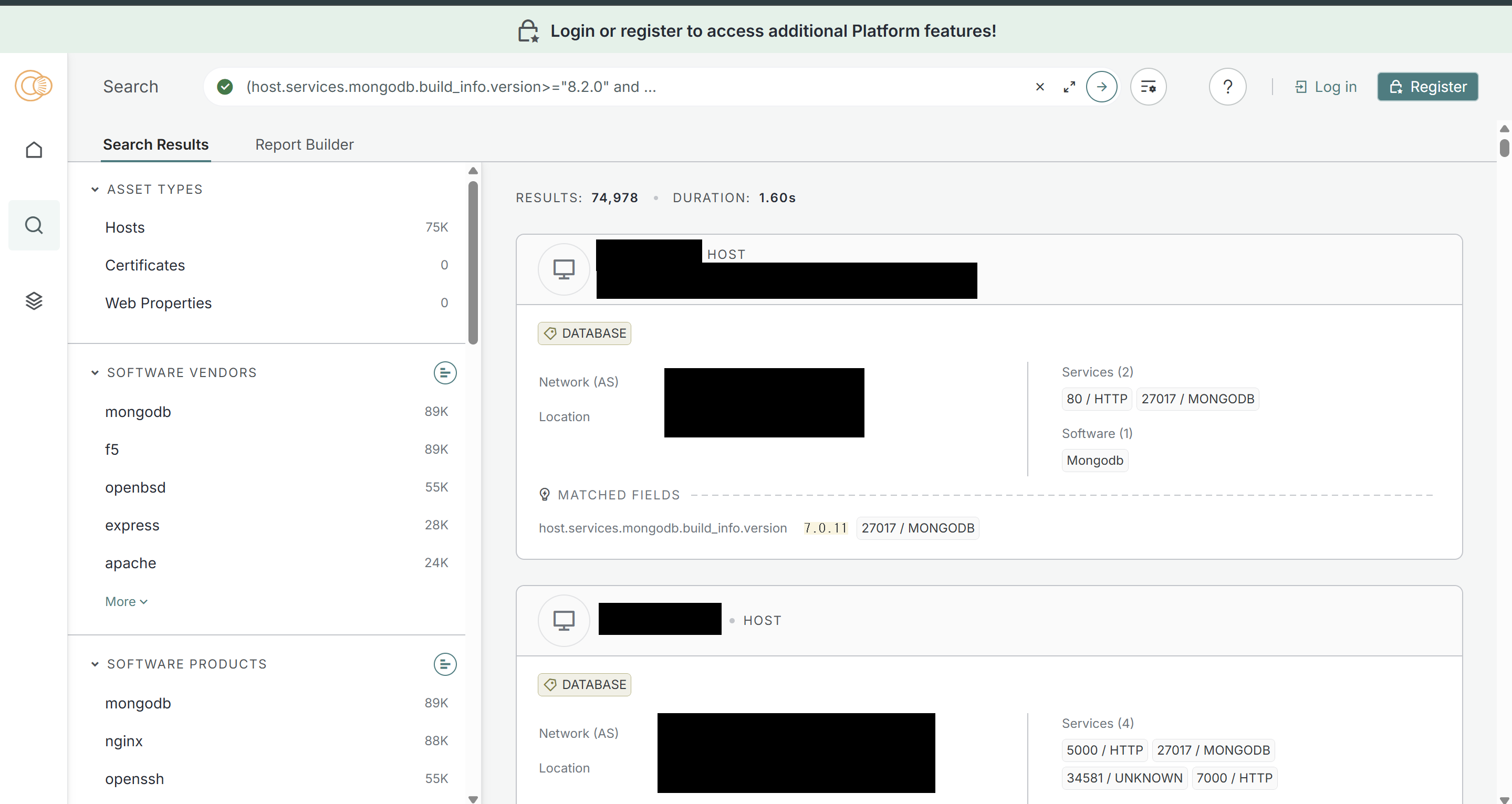 직접 Censys Search Engine과 Showdan Search Engine에서 Mongobleed 공격에 노출되어 있을 수도 있는 공개된 서버들을 확인해보니 각각 7만 5천대, 20만대가 존재하는 사실을 발견했습니다.