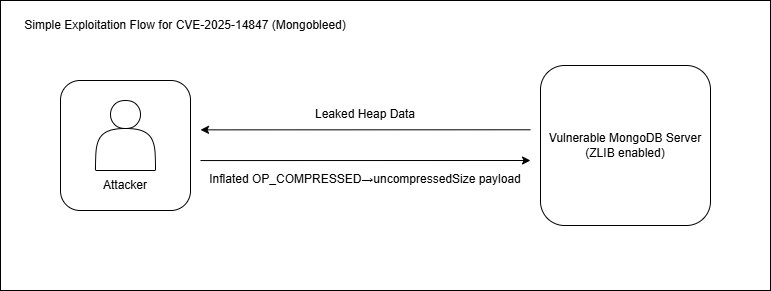 Mongobleed는 MongoDB 서버가 네트워크 압축 알고리즘으로 zlib을 사용할 때 발생하는 구현상의 허점을 악용해 초기화 되지 않은 힙 메모리 데이터가 누출될 수 있는 취약점입니다.